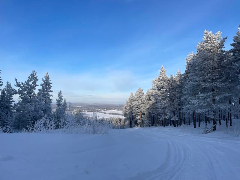 Maar een beetje later kreeg ik een melding op m'n gps dat de helling van 1,5km ging starten. Amai dat was stevig. Steil omhoog, soms aan 14%, maar wel zalig. Wij alleen met ons vijf, de mannen wat dollen onderling in de diepsneeuw tot we de top bereikten. Een natuurpark zo bleek.
