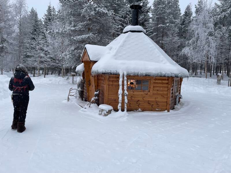 Dan zijn we in een mooie hut een tas koffie gaan drinken waar ze een heel verhaal verteld heeft over het conflict dat tot vandaag heerst tussen de Zweden en de Sami. Ze werden ooit bestempeld als wilden die minder intelligent waren als echte mensen en werden verdreven van hun land. Vandaag is er al regelgeving zodat ze bepaalde dingen terug kunnen doen maar er heerst nog steeds een moeilijke relatie. Sami hadden indertijd geen besef dat land van iemand kon zijn. Ze leefden als 1 met de natuur en trokken rond. Tot er grote boeren kwamen die land opeisten. Het was een emotioneel verhaal!