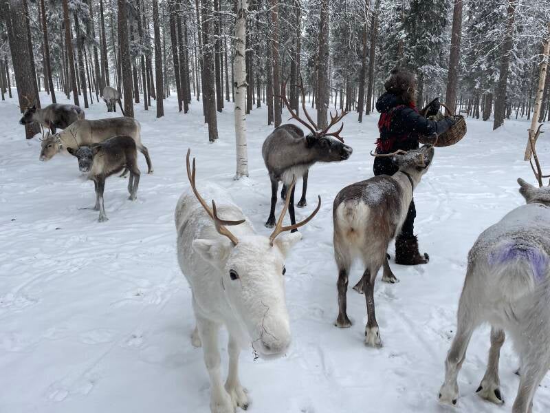 Deze dame is van de Sami gemeenschap en mag van de overheid maar 30 rendieren bezitten. Samen met haar gemeenschap hebben ze er meer dan 1000. Ze laten ze samen een aantal maanden in de natuur vrij en halen ze dan terug binnen. Elke familie heeft een uniek snede in de combinatie van de twee oren. Deze combinatie kan je in een database vinden zodat ze elkaars rendieren kennen. Kindjes van een rendier worden aan de moeder gekoppeld en krijgen dezelfde snedes als ze pas geboren zijn. Sommige rendieren raken ze kwijt en zo heeft ze recent uit Finland telefoon gehad dat haar rendier daar zat. Ze was het al 3 jaar kwijt. Dus zijn ze het gaan halen ginder.