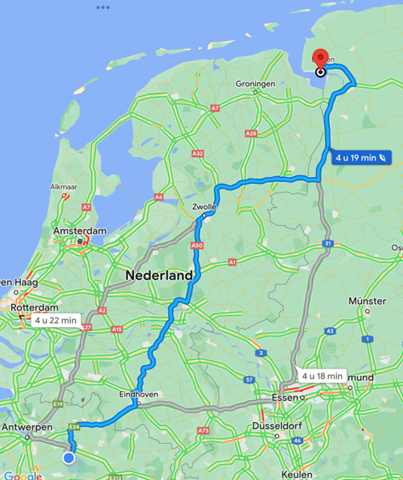 Vandaag zijn we van bij ons thuis naar Emden (DE) gereden. Onze ferry vertrok om 17h, maar aangezien we met de auto reizen moesten we 2h op voorhand al inchecken. Dus op tijd vertrekken was de boodschap!