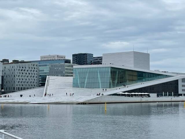 Daarna zijn we naar het Opera gebouw gefietst. Dit is een glanzend witte en geometrisch gebouwde opera van marmer en glas dat in de afgelopen jaren is uitgegroeid als favoriet van de inwoners van Oslo en de toeristen.