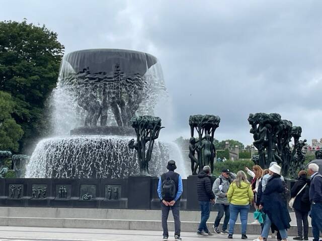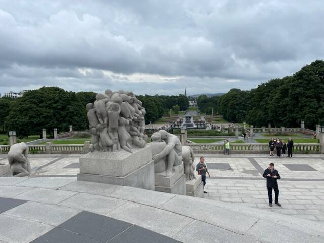 Het tripje begon met als eerste stop de Vigelandseparken met 212 granieten en bronzen beelden die allerlei gemoedstoestanden en expressies uitbeelden. Het meest in het oog springende is de monoliet van 14 meter hoog. Een pilaar gemaakt van een steen met daarop 121 mensfiguren. Dit was gewoon een gigantisch park met verschillende plateaus. Persoonlijk vond ik het echt wondermooi. Je hebt ogen te kort om alles te zien!