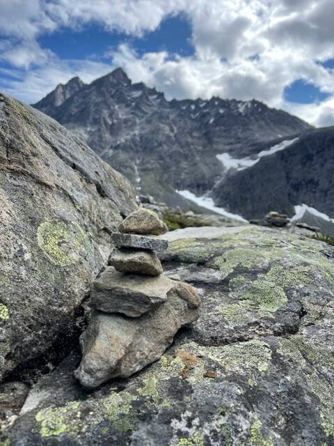 We hebben ook boven nog een kleine toren gemaakt van stenen zoals je die hier overal ziet. Bij ons is hij 5 stenen hoog omdat ons gezin met 5 is!