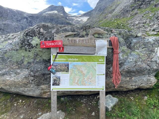 Na het ontbijt vertrokken we naar de Trolligsten. Gisteren hebben we al een paar foto's genomen maar dat was vanuit een toeristisch centrum met wat houten trollen en een klein museum over de historiek van de beklimmingen van de rots.